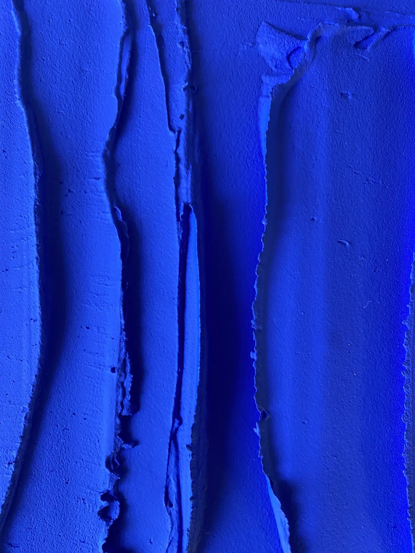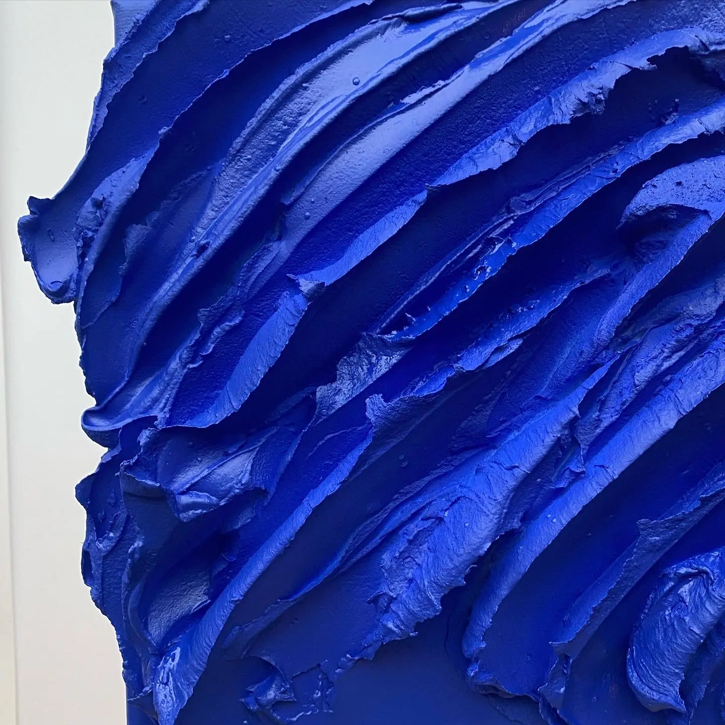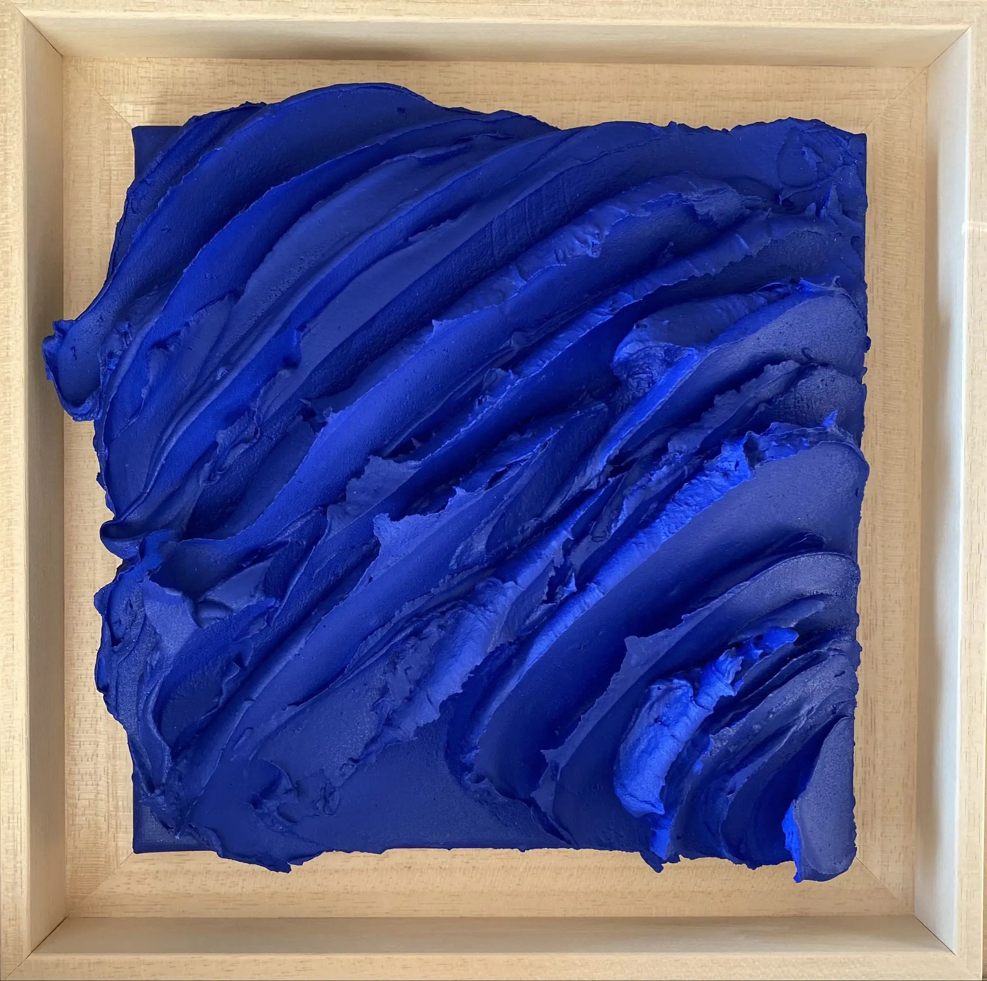 Le bleu profond, comme un océan silencieux, teint certaines pièces d’une dimension mystérieuse et intense, enveloppant l'œuvre d'une teinte à la fois apaisante et infinie.